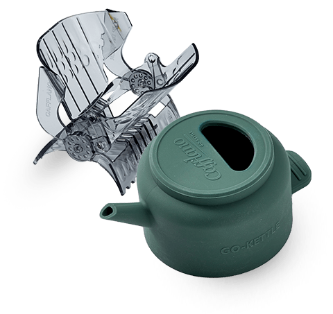 ゴーケトルをマグカップにセットし、上部の穴から熱湯を入れます。