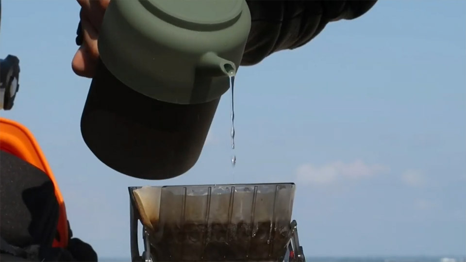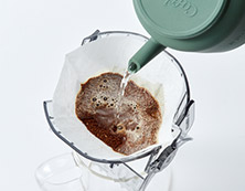 ゴーケトルの抽出口からお湯を注ぎ、じっくり蒸らしながらコーヒーを抽出します。